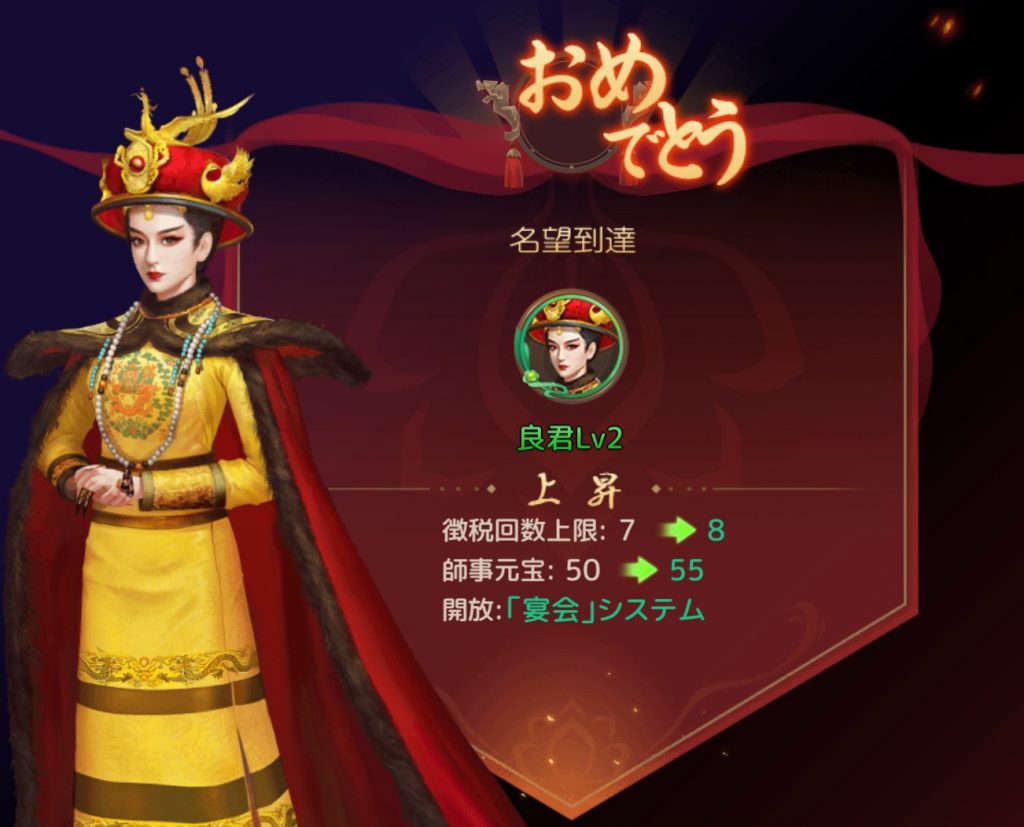 アイアム皇帝での宴会システムは、天子レベルが良君レベル2に到達することで自動的に解放されます。